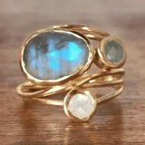 A ring with graceful, timeworn charm. Delicate opaque gemstones framed in antique-inspired metalwork.