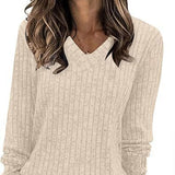 Women’s Ribbed V-Neck Long Sleeve Knit Top
