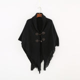 Women’s Toggle Front Poncho Cape – Fringe Hem Shawl Wrap